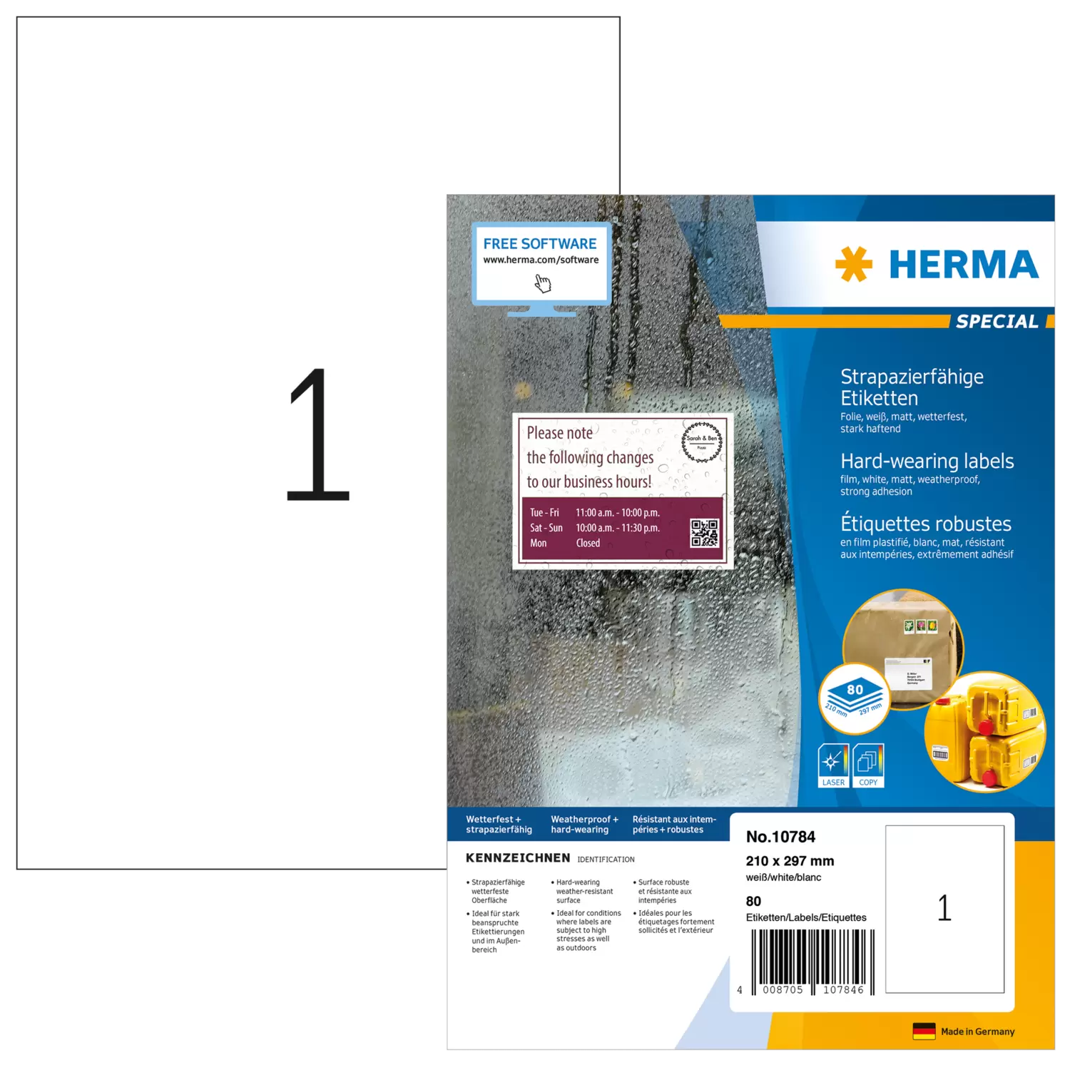 Wetterfeste Folienetiketten A4, 210 x 297 mm, weiß, extrem stark haftend