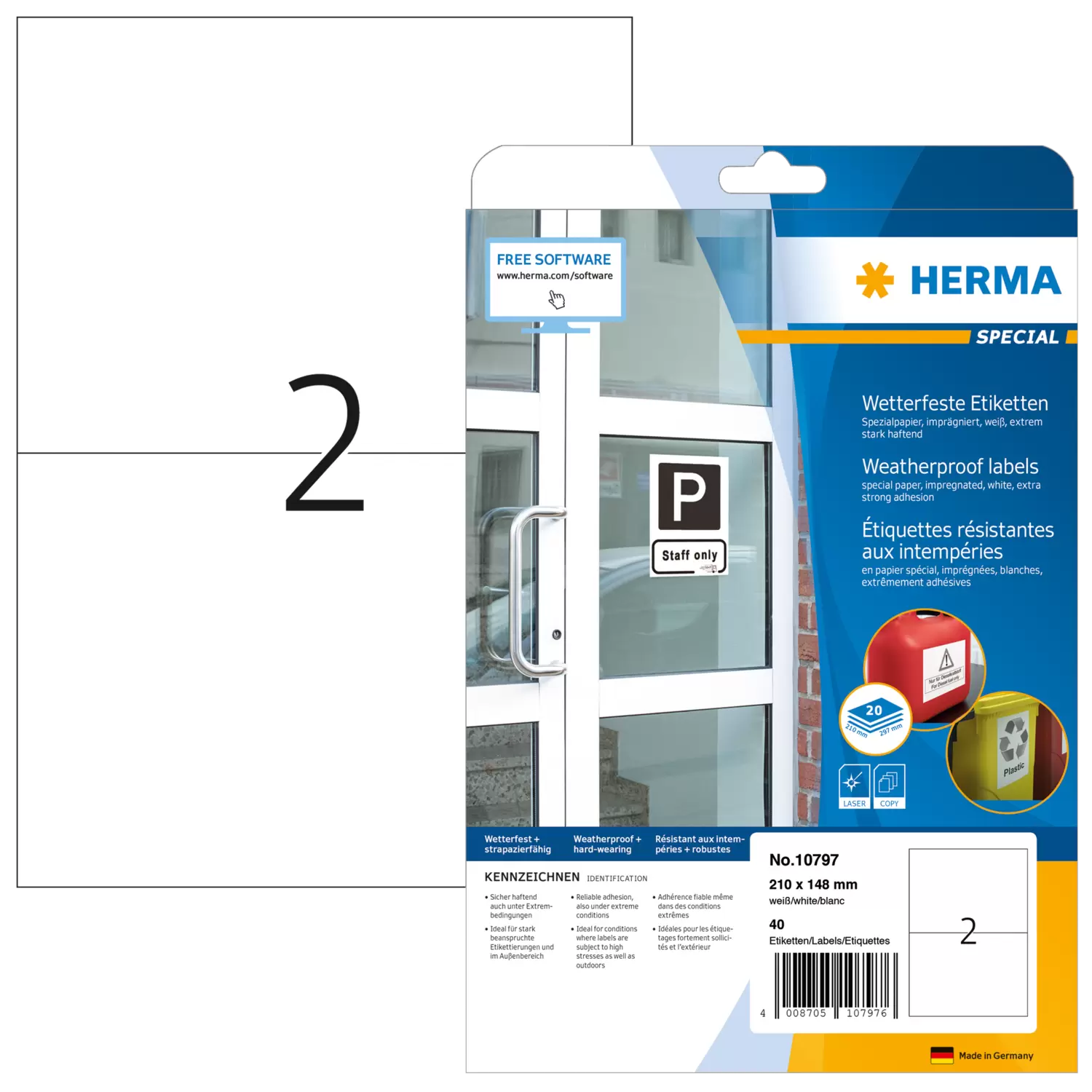 - Aus imprägniertem, weißem Spezialpapier, für stark beanspruchte Etikettierungen im Außenbereich