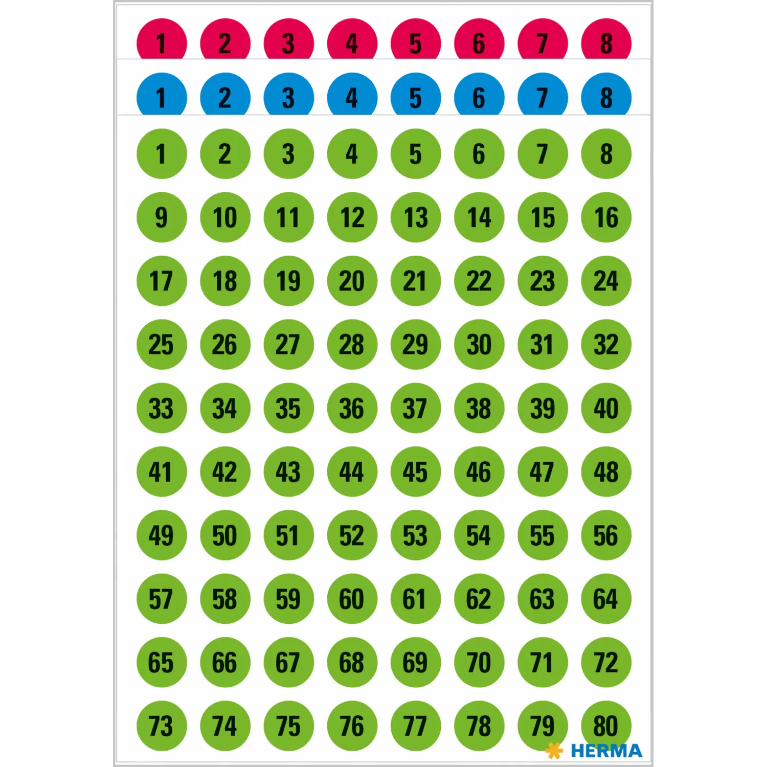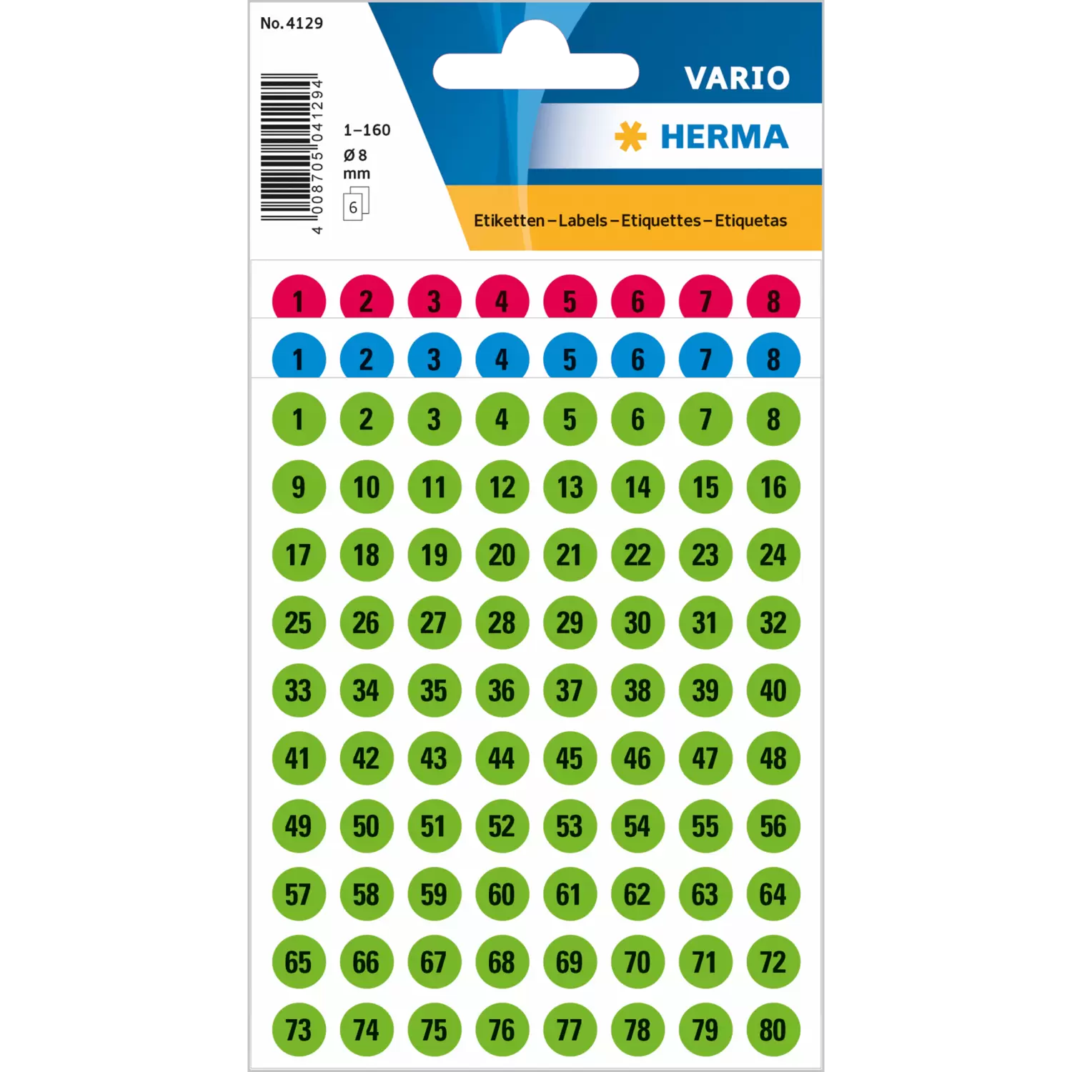 Zahlen Ø 8 mm 1-160 Papier farbig sortiert schwarz 6 Bl.